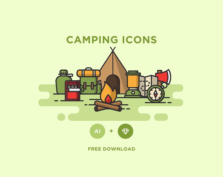 Partiu acampar, seus mão de vaca? Esse pacote de ícones trabalha a temática de camping, representando itens necessários em um acampamento. Caso surja um job para uma loja de caça e pesca ou para uma colônia de férias, aqui está uma ótima referência.